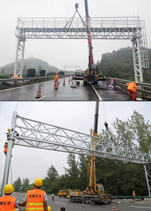 标志附着安装在上跨桥和附近构造物上,按附着版面所处位置不同分车行道上附着式、路测附着式两种。